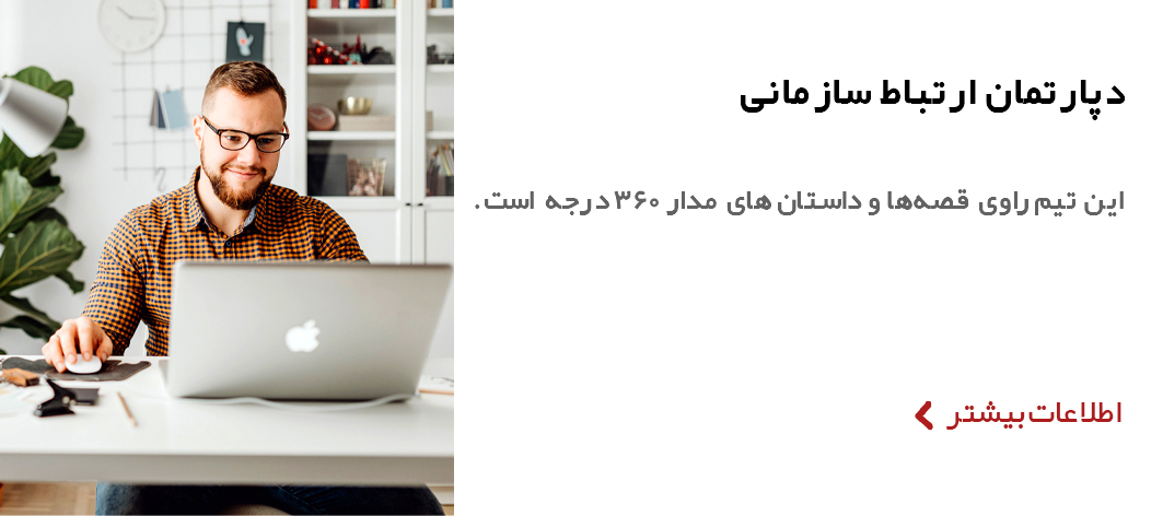 در «صفحه اصلی» میتوانید ارزشها و هویت ما را بیشتر بشناسید. همچنین با دنبال کردن صفحه اینستاگرام Madare360daraje.ir میتوانید بیشتر با محیط و فرهنگ کاری ما آشنا شوید.